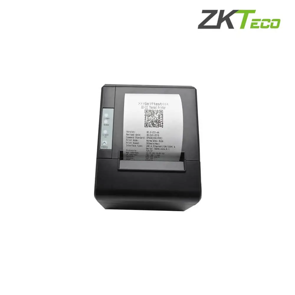 Máy in hóa đơn nhiệt ZKTeco ZKP8001 đáp ứng tốt nhu cầu in hóa đơn nhanh chóng, chính xác và chuyên nghiệp tại các cửa hàng, nhà hàng, siêu thị. Vỏ máy được làm từ chất liệu cao cấp, đảm bảo độ bền cao và dễ dàng vệ sinh. Máy in được thiết kế đơn giản, dễ dàng thay thế giấy in và các linh kiện khác.